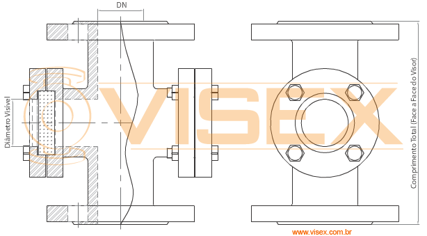 O visor de fluxo com janela dupla tem como função facilitar a visualização interna da tubulação. Sua construção permite uma rápida e segura verificação da linha, pois é composto de duas janelas, facilitando a entrada de luz. Os vidros de todos os visores de fluxo são temperados e de fácil troca, lembrando que são de longa duração.